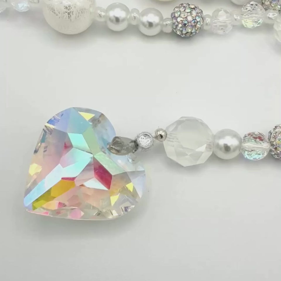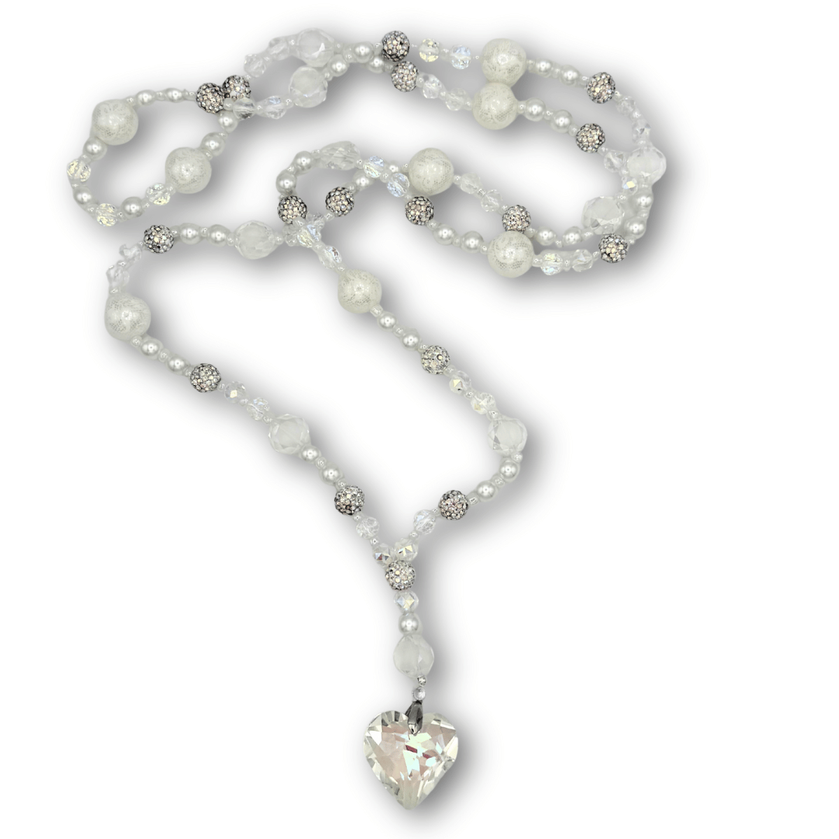 Meet the Radiant Grace Necklace – a stunning beaded beauty.  Loop it twice for a layered look, or let it hang long for maximum drama. Either way, you're making a statement.  Created with white and AB glass beads that gives a beautiful iridescent sparkle from every direction.